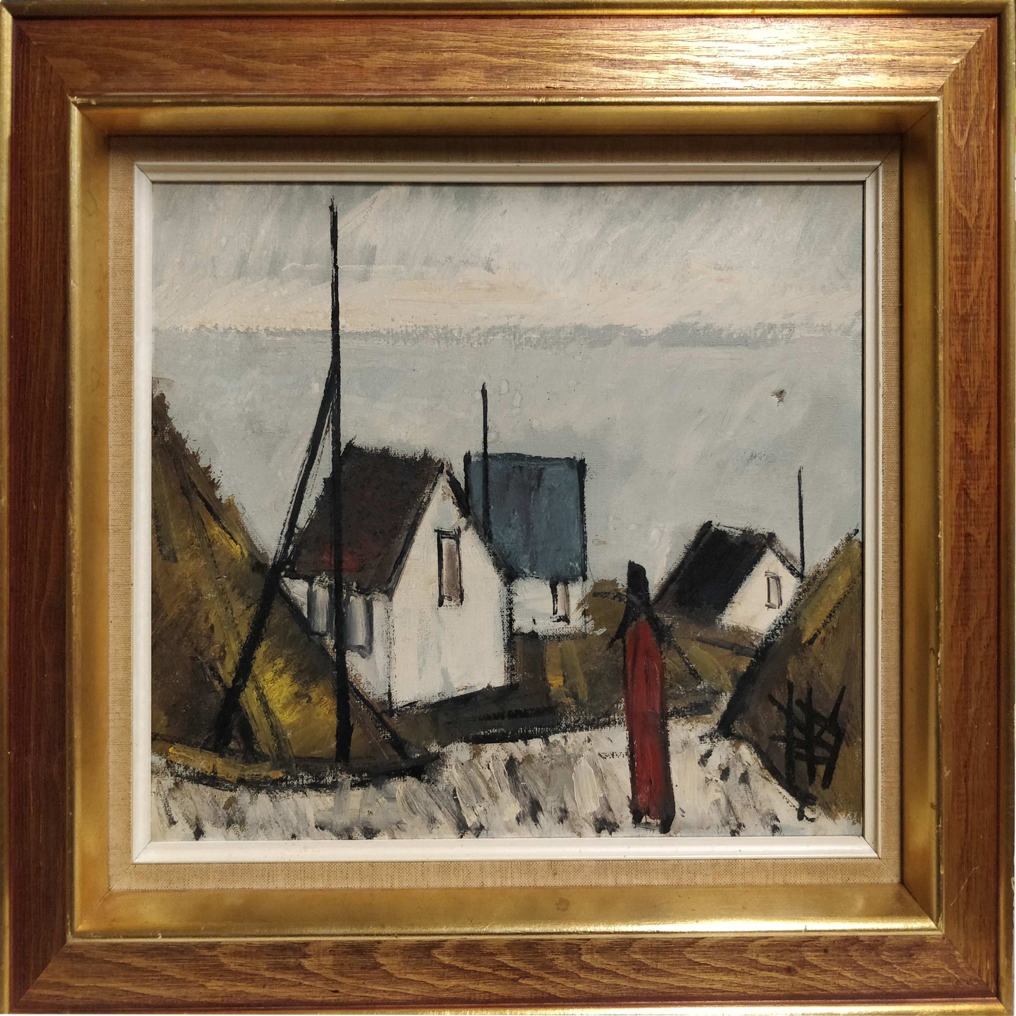 Peder Brøndum Sørensen (1931-2003), Danish painter, oil on canvas. "Houses by the Sea",1977. Signed. In perfect condition. Dimensions: 30.0 cm x 40.0 cm. Total with frame: 47 cm x 57 cm.