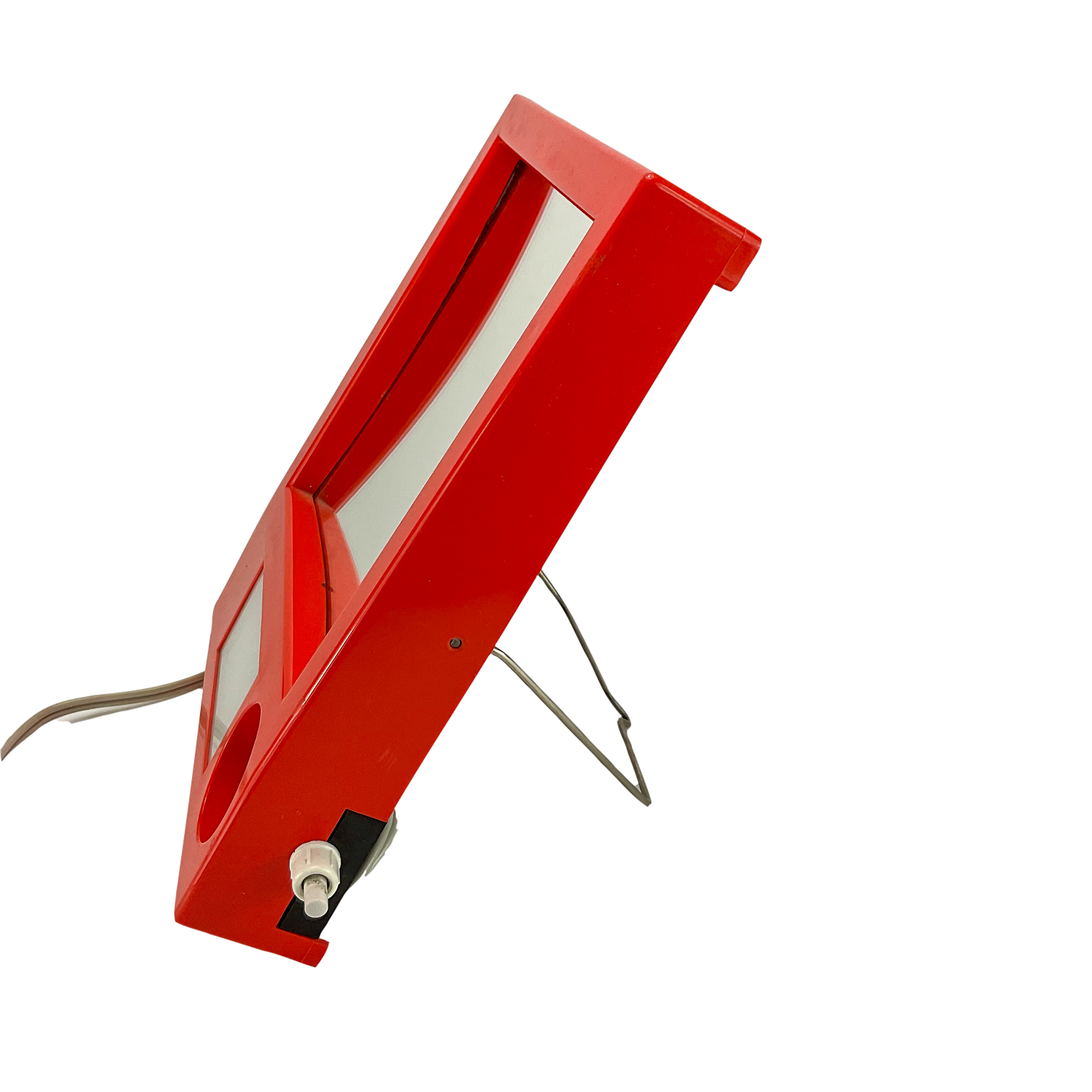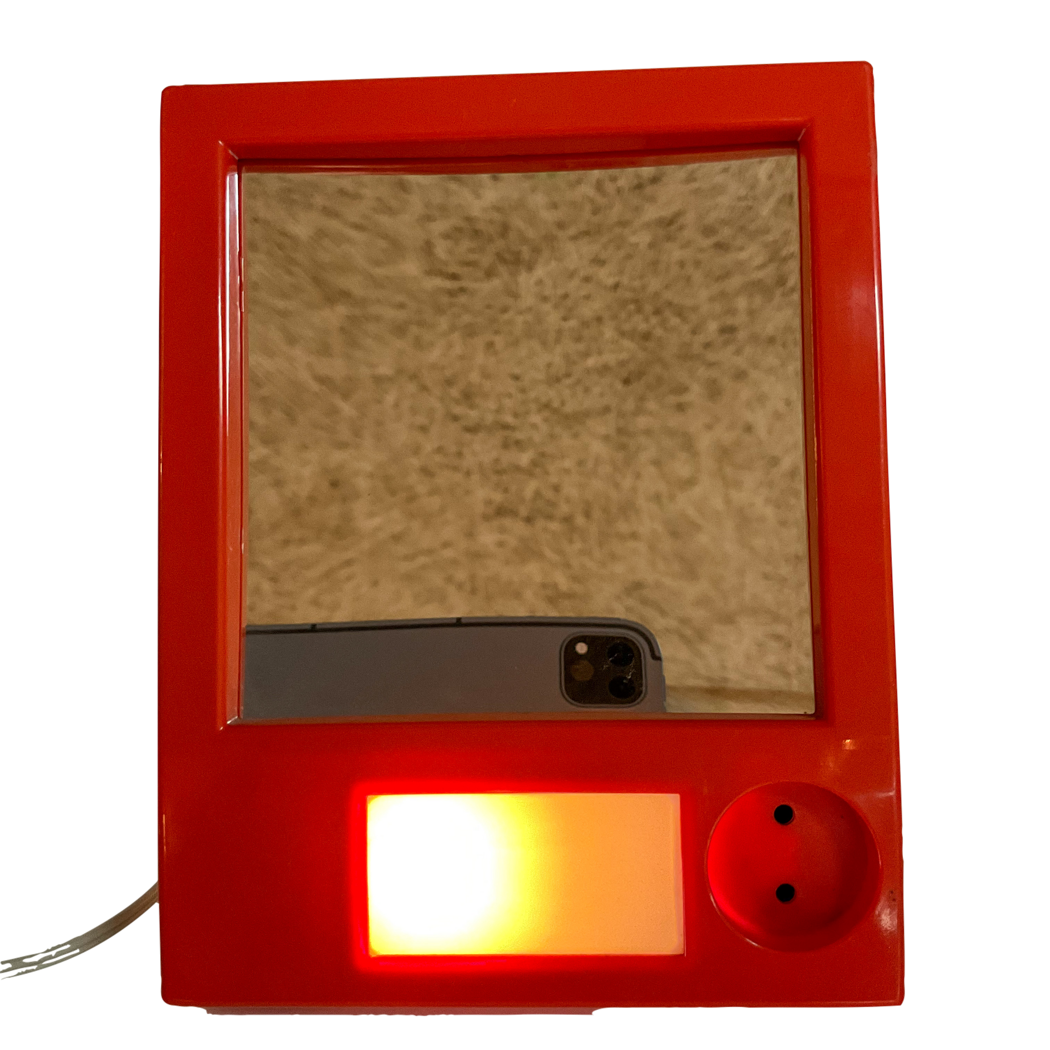 ✨ Step back into the Space Age with this stunning EVA Denmark Vintage 1970s Vanity Mirror! A must-have for retro collectors and vintage lovers, this orange plastic makeup & shaving mirror features dual mirrors (standard + magnifying) and a built-in light with a socket for added functionality.