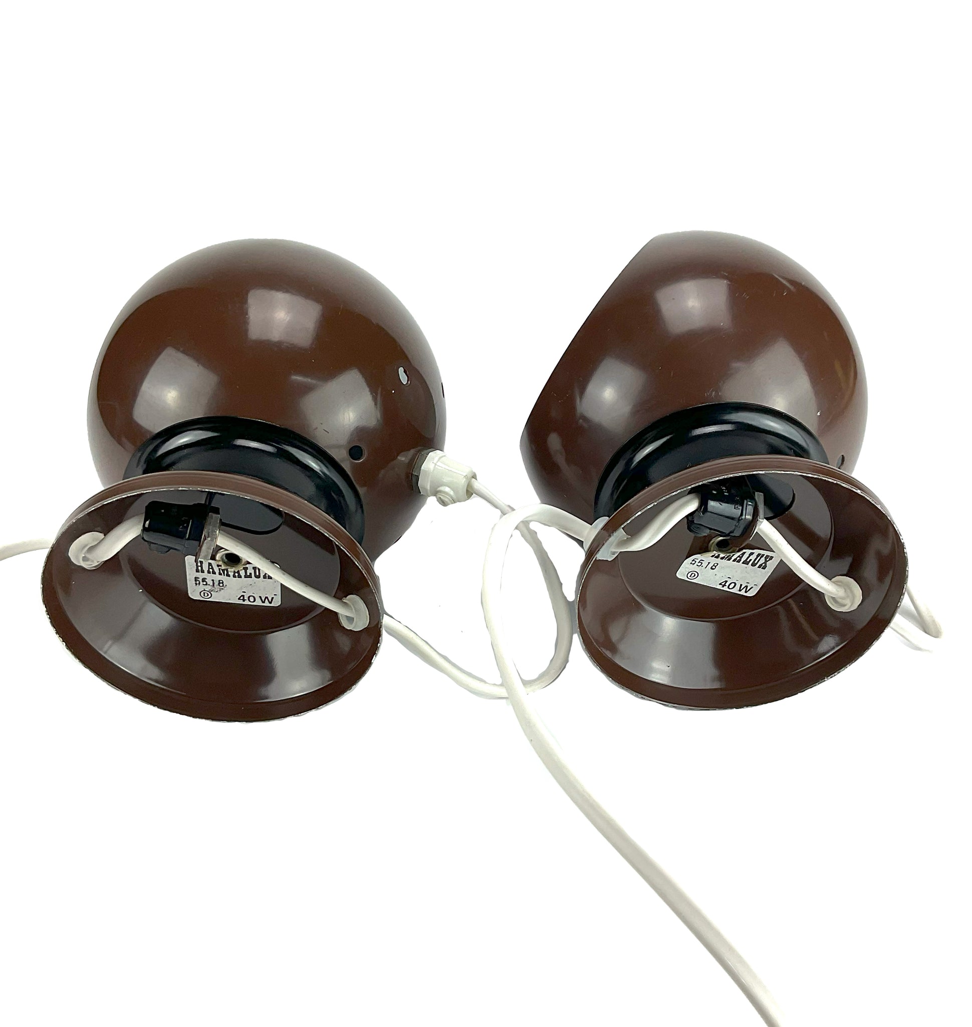 Hamalux Denmark Pair of Iconic Brown Eye Ball Table Lamps, Sold as a set.