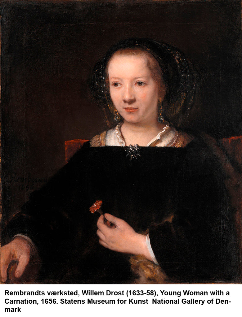 Rembrandts work, Williem Drost (1633-58), Young Woman with a Carnation, 1656