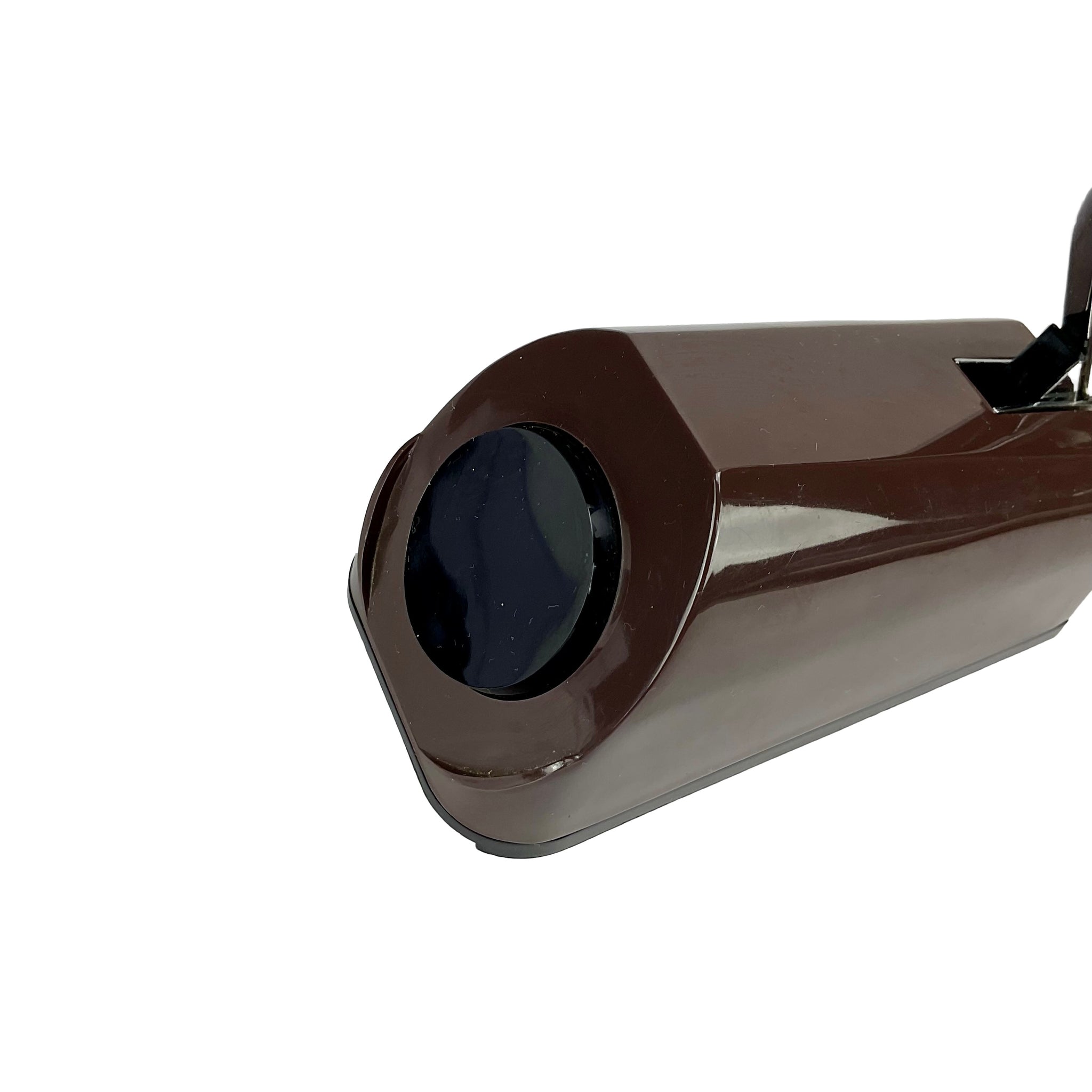 This stylish HBH MINI table or wall lamp was designed by Panton for Fog & Mørup in the 1970s, showcasing sleek Scandinavian mid-century design. The lamp features a chrome telescopic arm that extends up to 37 cm (14"), with an adjustable head for directional lighting. Its minimalist base includes a large black on/off button, and the lamp cleverly folds down compactly when not in use (see photos).